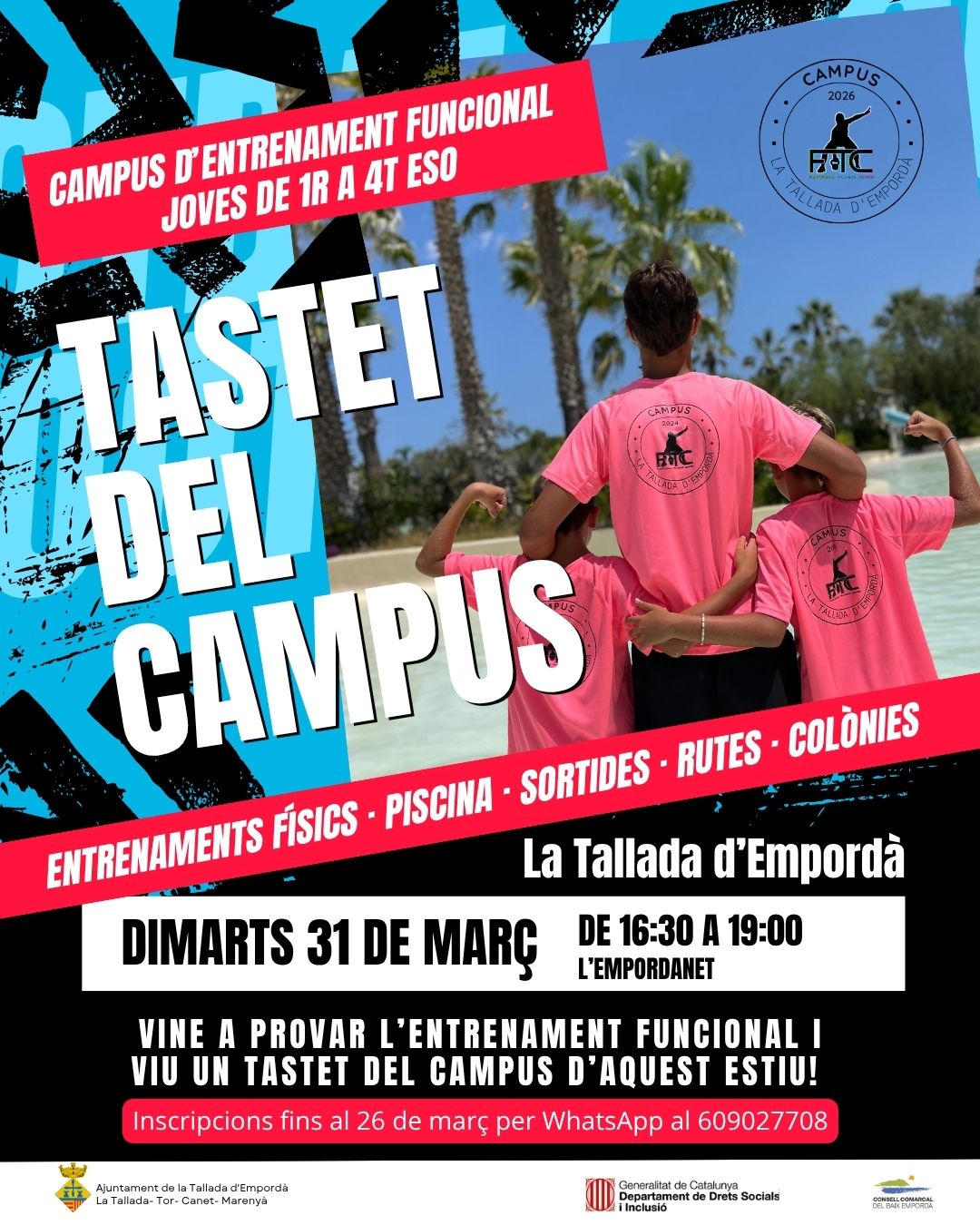 Aquest any es torna a oferir el campus esportiu per a joves de 1r a 4t d’ESO, orientat a l’entrenament funcional amb algunes novetats! El campus s’oferirà durant 4 setmanes del 29 de juny al 24 de juliol a l’Empordanet i del 27 al 30 de juliol el campus seguirà a la casa de colònies […]