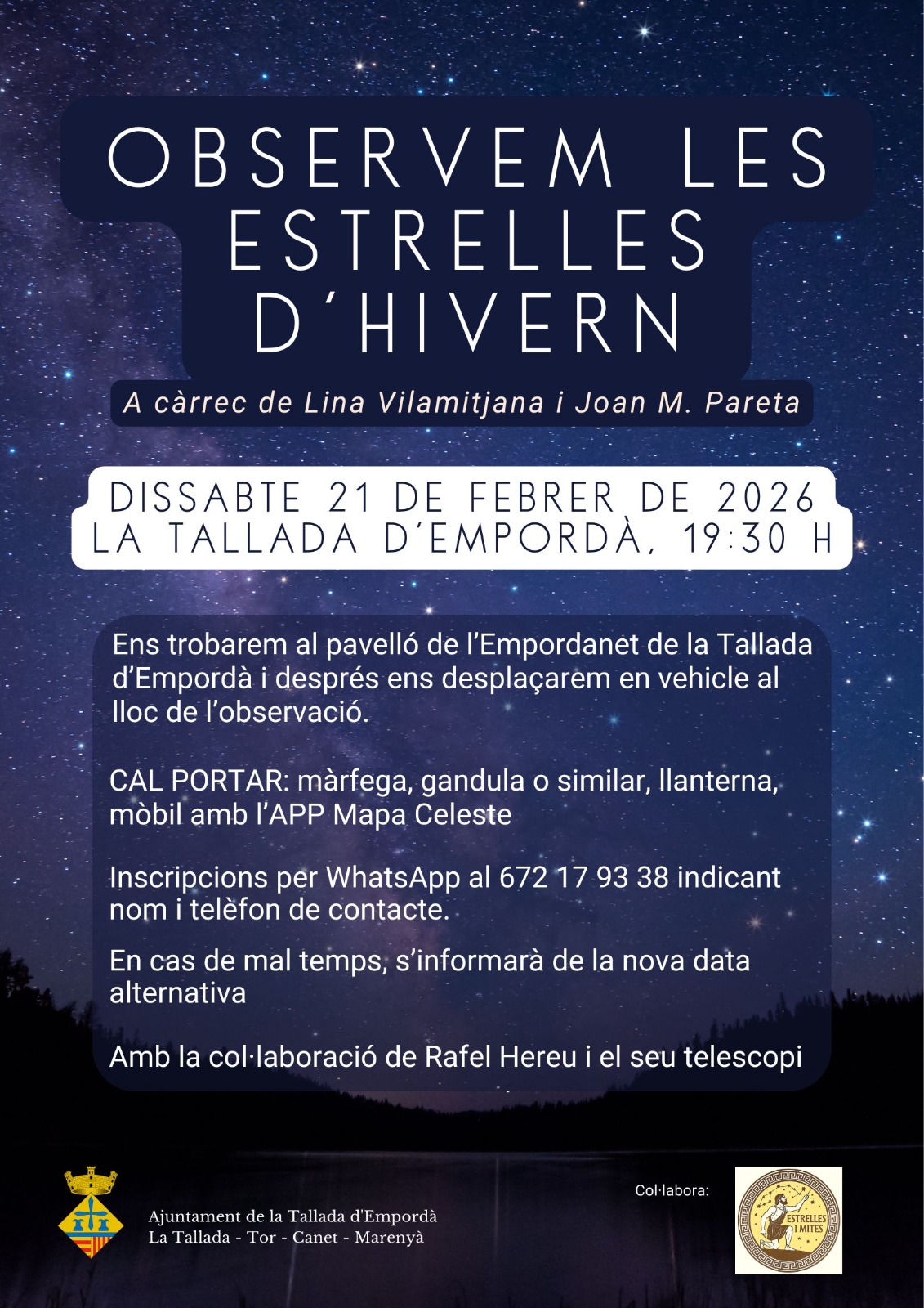 En cas de mal temps, s’informarà de la nova data alternativa.
