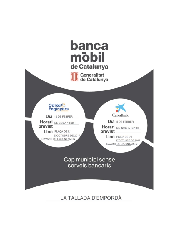 Es tracta d’una xarxa d’oficines bancàries mòbils itinerants que té l’objectiu de garantir la inclusió financera arreu de Catalunya. Els veïns dels municipis afectats rebran els serveis d’una sucursal bancària i els atendrà personal especialitzat.
